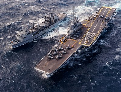 Elle peut aussi participer au contrôle et à la gestion de l’espace aérien avec ses avions de guet avancés Hawkeye.
