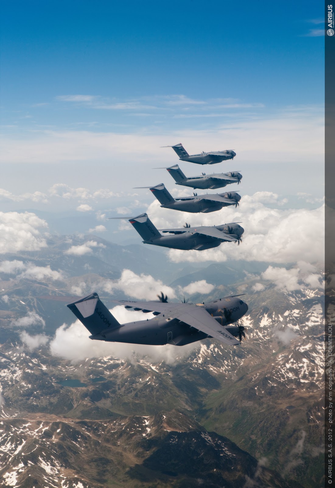 Airbus Military nous gratifie aujourd’hui de très belles images, avec le vol en formation de pas moins de 5 appareils! Vivement que les vidéos soient disponibles.