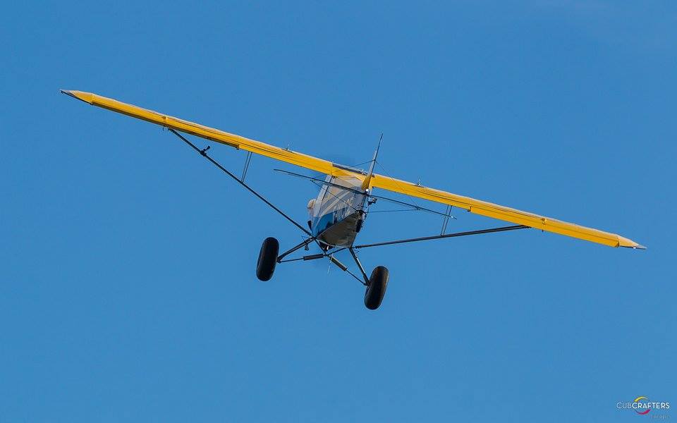 Ce premier vol d’un Carbon Cub français est l’aboutissement d’un an et demi de construction et en parallèle de certification auprès de la DGAC. Cet avion, livré en 3 kits, ressemble fortement aux Piper Cub classiques desquels il est issu. Il est équipé d’un moteur CC340 de 180ch, d’une hélice composite Catto, de pneus surdimensionnés de 29’’caractéristiques (tundra tires) et pèse moins de 430kg à vide. Tout cela doit permettre de décoller sous les 60m !