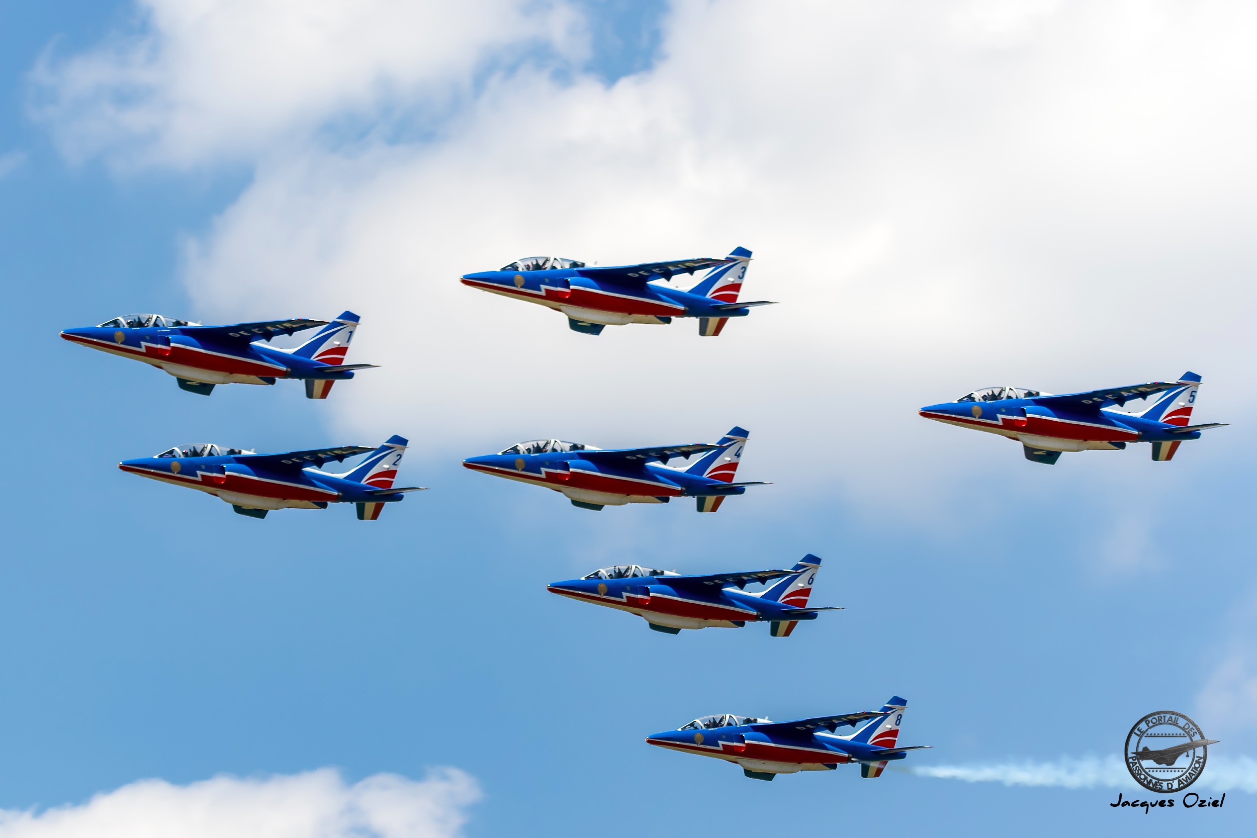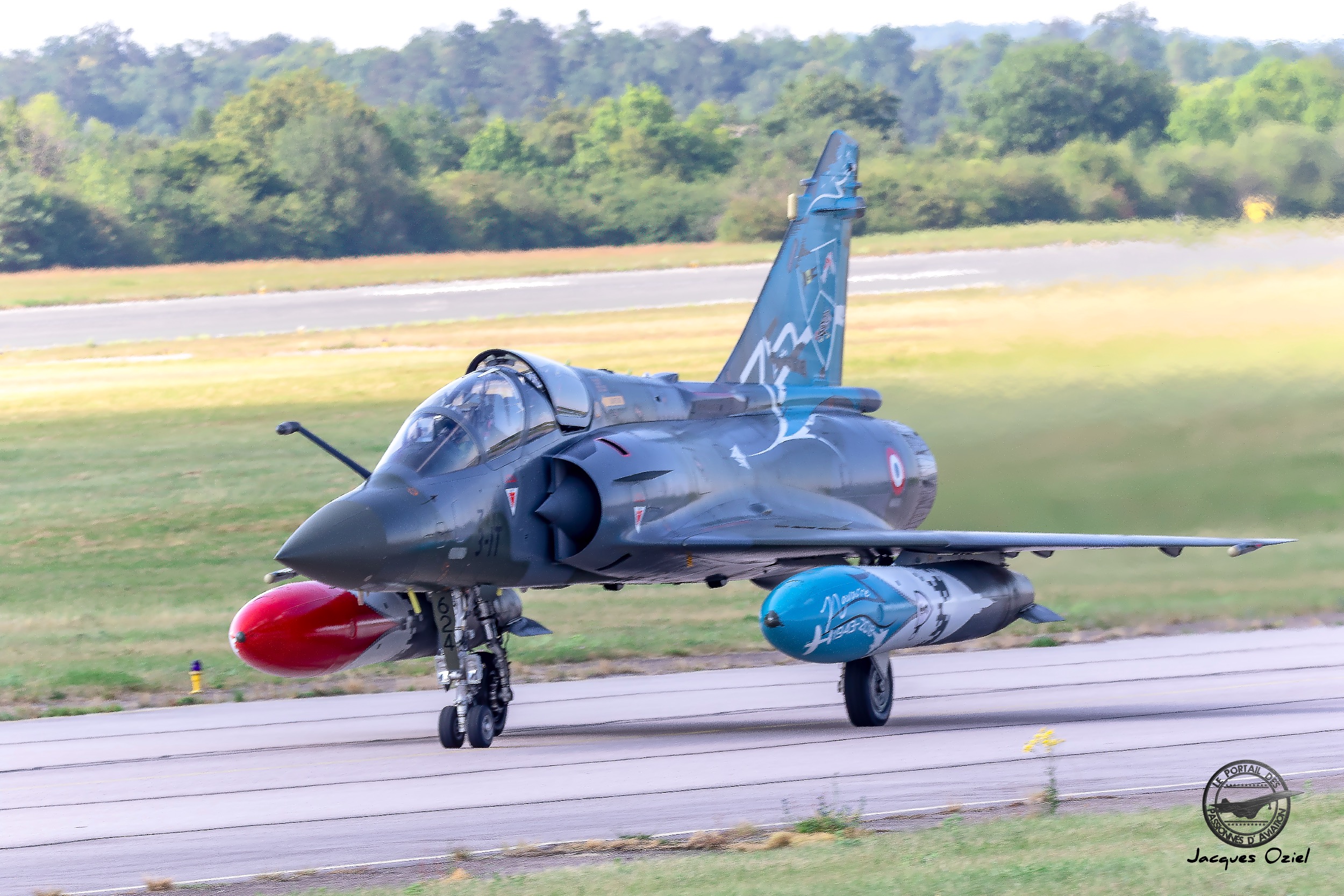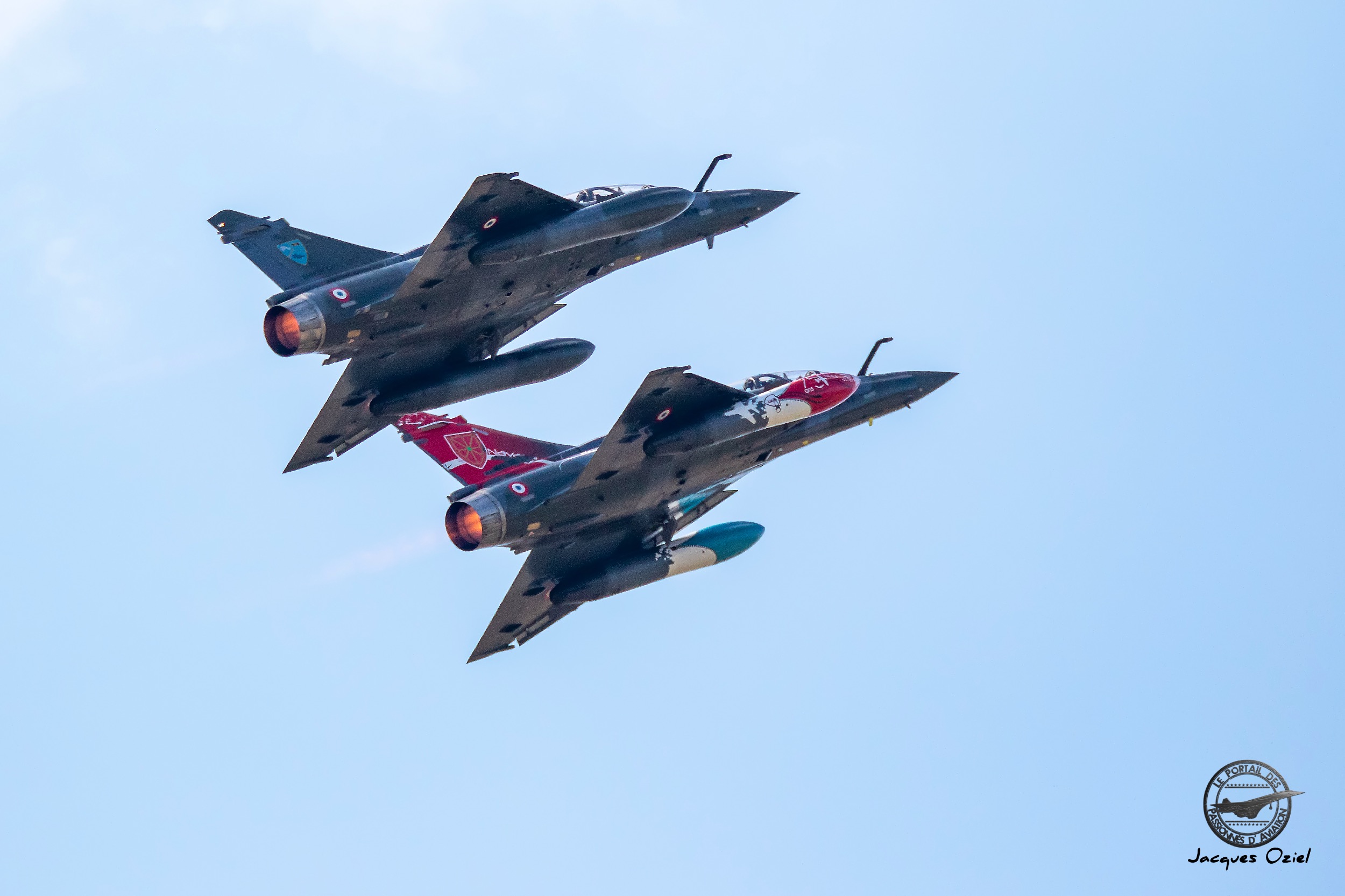 Nicolas Sauvage qui est navigateur à la SPA 102 a créé les 5 peintures, des 5 escadrons fêtant leurs anniversaires, c’est à dire l’escadron de chasse 1/3 Navarre, 2/3 Champagne, 3/3 Ardenne, 4/3 Argonne et de l’ESTA Malzeville (Escadron de Soutien Technique Aéronautique). Afin de rappeler également les équipages des Couteau Delta, il a mis sur chacune des 5 peintures, leur symbole que vous connaissez tous, de façon à ce que quand la patrouille fait ses présentations, elle soit à l’honneur sur les Mirage 2000.