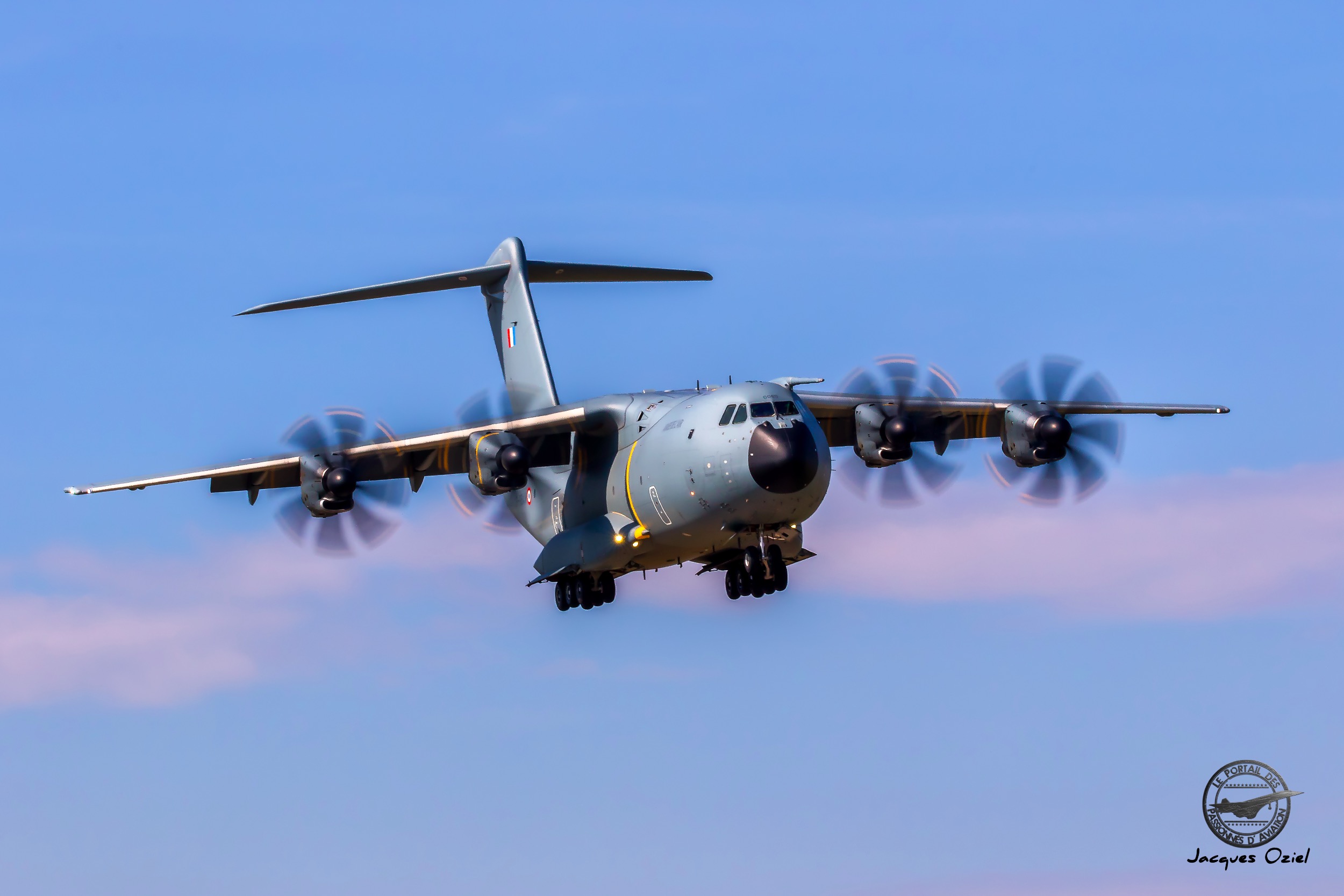 Campé devant l’avion, il attaque :